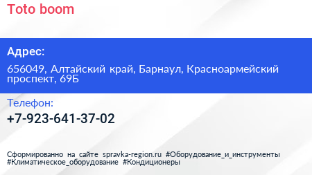 Toto boom по адресу 656049, Алтайский край, Барнаул, Красноармейский проспект, 69Б в дальнейшем Организация, размещена в следующих категориях: