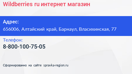 Wildberries.ru, интернет-магазин по адресу 656006, Алтайский край, Барнаул, Власихинская, 77 в дальнейшем Организация, размещена в следующих категориях: