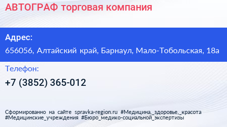 АВТОГРАФ, торговая компания по адресу 656056, Алтайский край, Барнаул, Мало-Тобольская, 18а в дальнейшем Организация, размещена в следующих категориях: