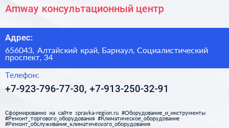 Amway, консультационный центр по адресу 656043, Алтайский край, Барнаул, Социалистический проспект, 34 в дальнейшем Организация, размещена в следующих категориях:
