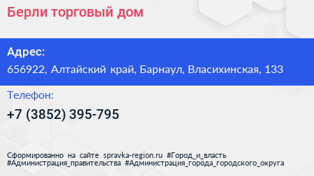 Берли, торговый дом по адресу 656922, Алтайский край, Барнаул, Власихинская, 133 в дальнейшем Организация, размещена в следующих категориях: