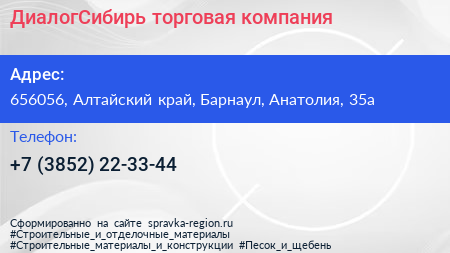 ДиалогСибирь, торговая компания по адресу 656056, Алтайский край, Барнаул, Анатолия, 35а в дальнейшем Организация, размещена в следующих категориях: