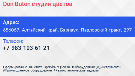 Don Buton, студия цветов по адресу 656067, Алтайский край, Барнаул, Павловский тракт, 297 в дальнейшем Организация, размещена в следующих категориях: