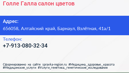 Голле Галла, салон цветов по адресу 656058, Алтайский край, Барнаул, Взлётная, 41а/1 в дальнейшем Организация, размещена в следующих категориях:
