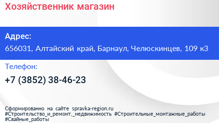 Хозяйственник, магазин по адресу 656031, Алтайский край, Барнаул, Челюскинцев, 109 к3 в дальнейшем Организация, размещена в следующих категориях: