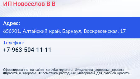 ИП Новоселов В.В. по адресу 656901, Алтайский край, Барнаул, Воскресенская, 17 в дальнейшем Организация, размещена в следующих категориях: