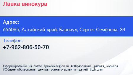 Лавка винокура по адресу 656065, Алтайский край, Барнаул, Сергея Семёнова, 34 в дальнейшем Организация, размещена в следующих категориях: