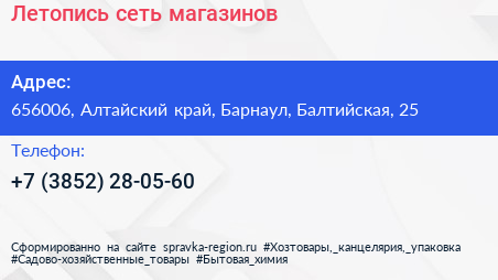 Летопись, сеть магазинов по адресу 656006, Алтайский край, Барнаул, Балтийская, 25 в дальнейшем Организация, размещена в следующих категориях: