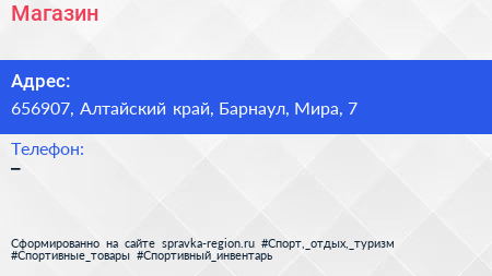 Магазин по адресу 656907, Алтайский край, Барнаул, Мира, 7 в дальнейшем Организация, размещена в следующих категориях: