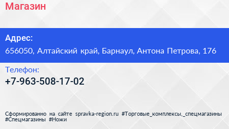 Магазин по адресу 656050, Алтайский край, Барнаул, Антона Петрова, 176 в дальнейшем Организация, размещена в следующих категориях:
