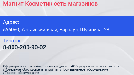 Магнит Косметик, сеть магазинов по адресу 656060, Алтайский край, Барнаул, Шукшина, 28 в дальнейшем Организация, размещена в следующих категориях: