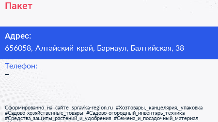 Пакет+ по адресу 656058, Алтайский край, Барнаул, Балтийская, 38 в дальнейшем Организация, размещена в следующих категориях:
