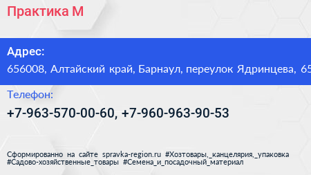 Практика М по адресу 656008, Алтайский край, Барнаул, переулок Ядринцева, 65 в дальнейшем Организация, размещена в следующих категориях: