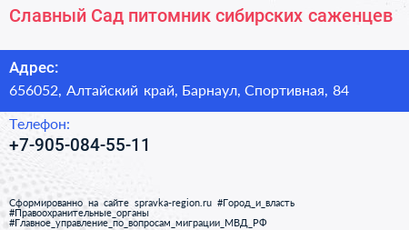 Славный Сад, питомник сибирских саженцев по адресу 656052, Алтайский край, Барнаул, Спортивная, 84 в дальнейшем Организация, размещена в следующих категориях: