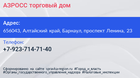 АЗРОСС, торговый дом по адресу 656043, Алтайский край, Барнаул, проспект Ленина, 23 в дальнейшем Организация, размещена в следующих категориях:
