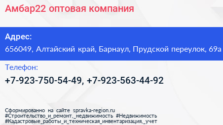 Амбар22, оптовая компания по адресу 656049, Алтайский край, Барнаул, Прудской переулок, 69а в дальнейшем Организация, размещена в следующих категориях: