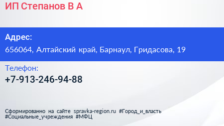 ИП Степанов В.А. по адресу 656064, Алтайский край, Барнаул, Гридасова, 19 в дальнейшем Организация, размещена в следующих категориях: