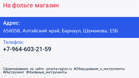 На фольге, магазин по адресу 656058, Алтайский край, Барнаул, Шумакова, 15Б в дальнейшем Организация, размещена в следующих категориях: