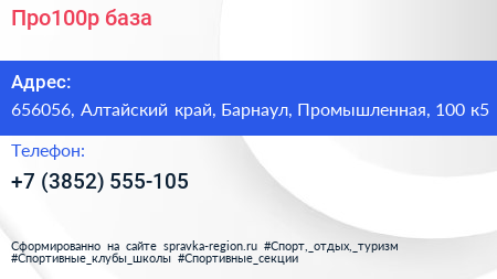 Про100р, база по адресу 656056, Алтайский край, Барнаул, Промышленная, 100 к5 в дальнейшем Организация, размещена в следующих категориях: