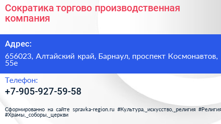 Сократика, торгово-производственная компания по адресу 656023, Алтайский край, Барнаул, проспект Космонавтов, 55е в дальнейшем Организация, размещена в следующих категориях: