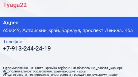 Tyaga22 по адресу 656049, Алтайский край, Барнаул, проспект Ленина, 45а в дальнейшем Организация, размещена в следующих категориях: