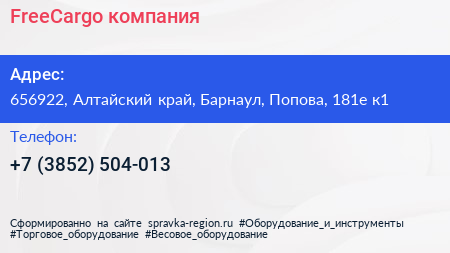 FreeCargo, компания по адресу 656922, Алтайский край, Барнаул, Попова, 181е к1 в дальнейшем Организация, размещена в следующих категориях: