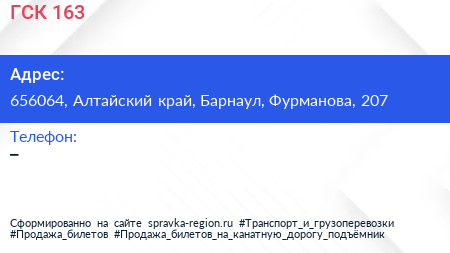 ГСК-163 по адресу 656064, Алтайский край, Барнаул, Фурманова, 207 в дальнейшем Организация, размещена в следующих категориях: