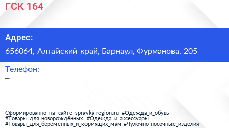 ГСК №164 по адресу 656064, Алтайский край, Барнаул, Фурманова, 205 в дальнейшем Организация, размещена в следующих категориях: