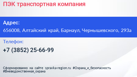 ПЭК, транспортная компания по адресу 656008, Алтайский край, Барнаул, Чернышевского, 293а в дальнейшем Организация, размещена в следующих категориях: