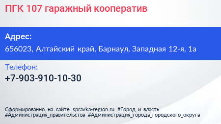 ПГК №107, гаражный кооператив по адресу 656023, Алтайский край, Барнаул, Западная 12-я, 1а в дальнейшем Организация, размещена в следующих категориях: