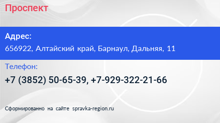 Проспект по адресу 656922, Алтайский край, Барнаул, Дальняя, 11 в дальнейшем Организация, размещена в следующих категориях: