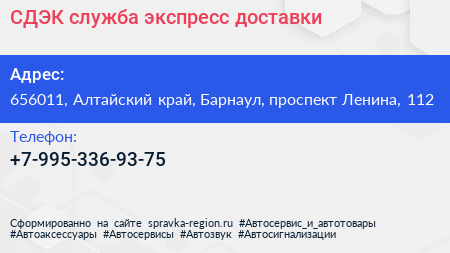 СДЭК, служба экспресс-доставки по адресу 656011, Алтайский край, Барнаул, проспект Ленина, 112 в дальнейшем Организация, размещена в следующих категориях: