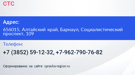 СТС по адресу 656015, Алтайский край, Барнаул, Социалистический проспект, 109 в дальнейшем Организация, размещена в следующих категориях: