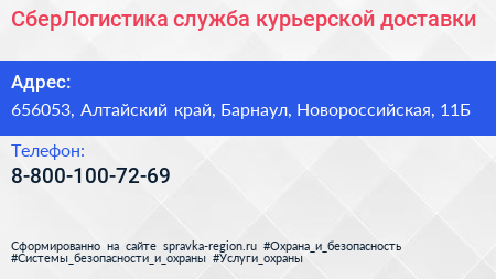 СберЛогистика, служба курьерской доставки по адресу 656053, Алтайский край, Барнаул, Новороссийская, 11Б в дальнейшем Организация, размещена в следующих категориях: