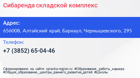 Сибаренда, складской комплекс по адресу 656008, Алтайский край, Барнаул, Чернышевского, 295 в дальнейшем Организация, размещена в следующих категориях:
