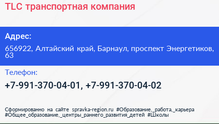 TLC, транспортная компания по адресу 656922, Алтайский край, Барнаул, проспект Энергетиков, 63 в дальнейшем Организация, размещена в следующих категориях: