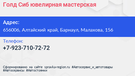 Голд Сиб, ювелирная мастерская по адресу 656006, Алтайский край, Барнаул, Малахова, 156 в дальнейшем Организация, размещена в следующих категориях: