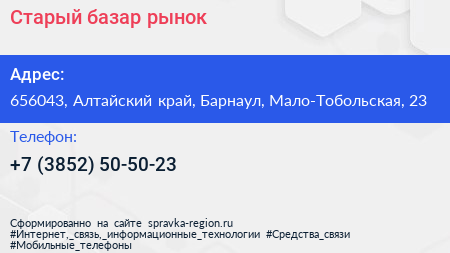 Старый базар, рынок по адресу 656043, Алтайский край, Барнаул, Мало-Тобольская, 23 в дальнейшем Организация, размещена в следующих категориях: