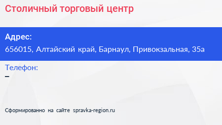 Столичный, торговый центр по адресу 656015, Алтайский край, Барнаул, Привокзальная, 35а в дальнейшем Организация, размещена в следующих категориях: