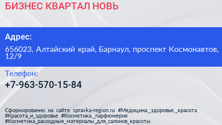 БИЗНЕС КВАРТАЛ НОВЬ по адресу 656023, Алтайский край, Барнаул, проспект Космонавтов, 12/9 в дальнейшем Организация, размещена в следующих категориях: