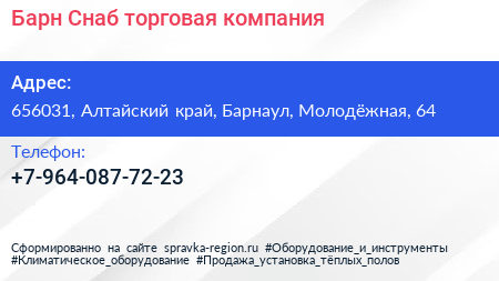 Барн-Снаб, торговая компания по адресу 656031, Алтайский край, Барнаул, Молодёжная, 64 в дальнейшем Организация, размещена в следующих категориях:
