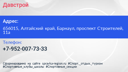 Давстрой по адресу 656015, Алтайский край, Барнаул, проспект Строителей, 11а в дальнейшем Организация, размещена в следующих категориях: