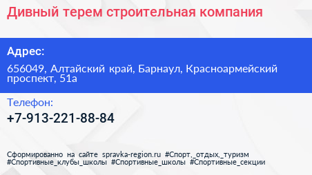 Дивный терем, строительная компания по адресу 656049, Алтайский край, Барнаул, Красноармейский проспект, 51а в дальнейшем Организация, размещена в следующих категориях:
