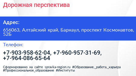 Дорожная перспектива по адресу 656063, Алтайский край, Барнаул, проспект Космонавтов, 52Б в дальнейшем Организация, размещена в следующих категориях:
