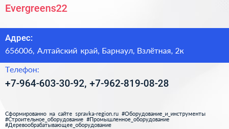 Evergreens22 по адресу 656006, Алтайский край, Барнаул, Взлётная, 2к в дальнейшем Организация, размещена в следующих категориях: