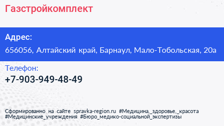 Газстройкомплект по адресу 656056, Алтайский край, Барнаул, Мало-Тобольская, 20а в дальнейшем Организация, размещена в следующих категориях: