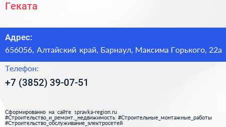 Геката по адресу 656056, Алтайский край, Барнаул, Максима Горького, 22а в дальнейшем Организация, размещена в следующих категориях:
