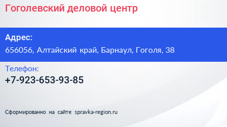 Гоголевский, деловой центр по адресу 656056, Алтайский край, Барнаул, Гоголя, 38 в дальнейшем Организация, размещена в следующих категориях: