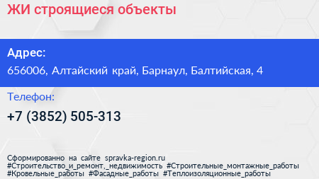 ЖИ, строящиеся объекты по адресу 656006, Алтайский край, Барнаул, Балтийская, 4 в дальнейшем Организация, размещена в следующих категориях: