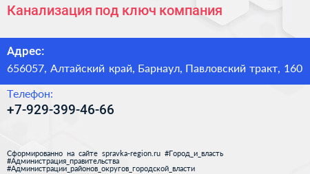 Канализация под ключ, компания по адресу 656057, Алтайский край, Барнаул, Павловский тракт, 160 в дальнейшем Организация, размещена в следующих категориях: